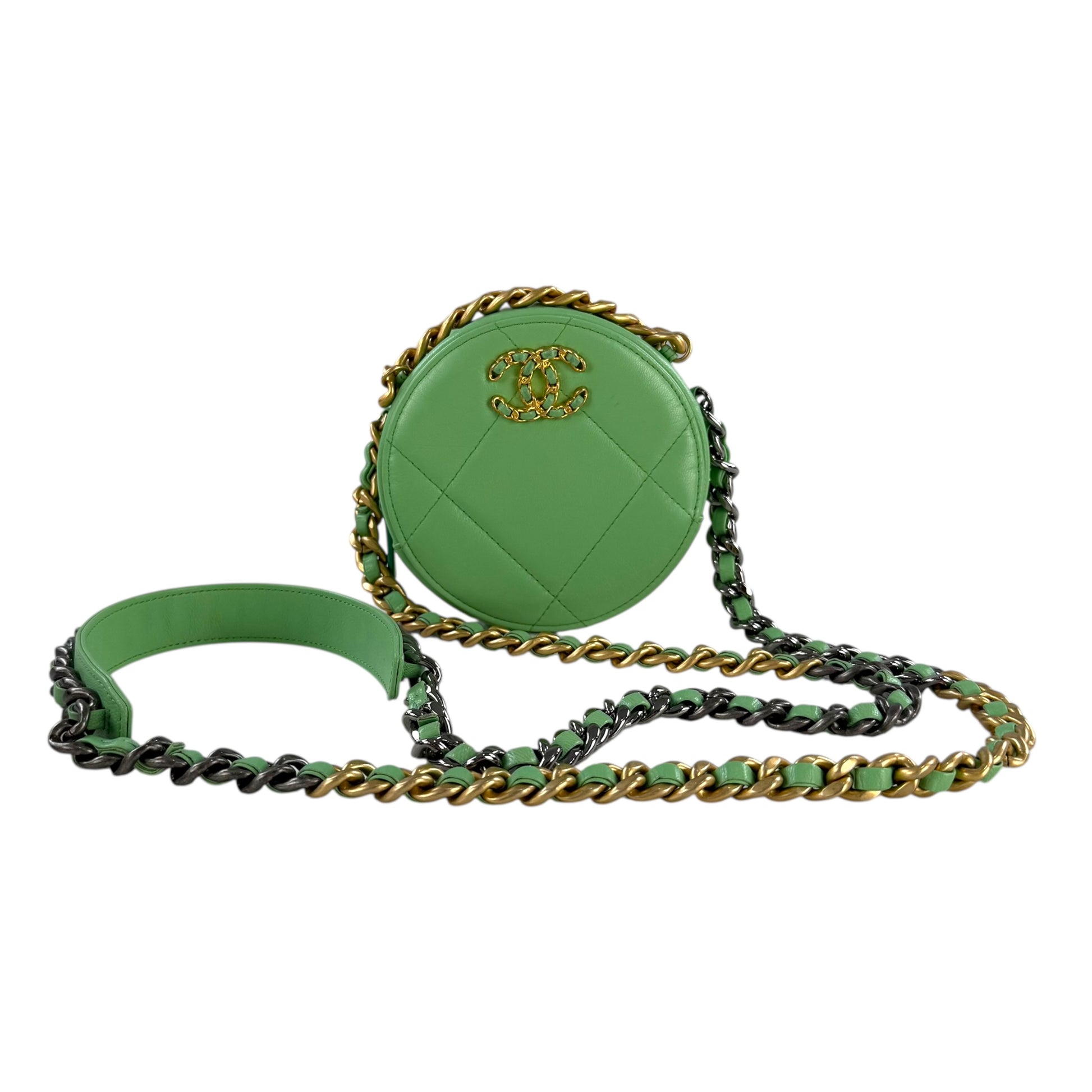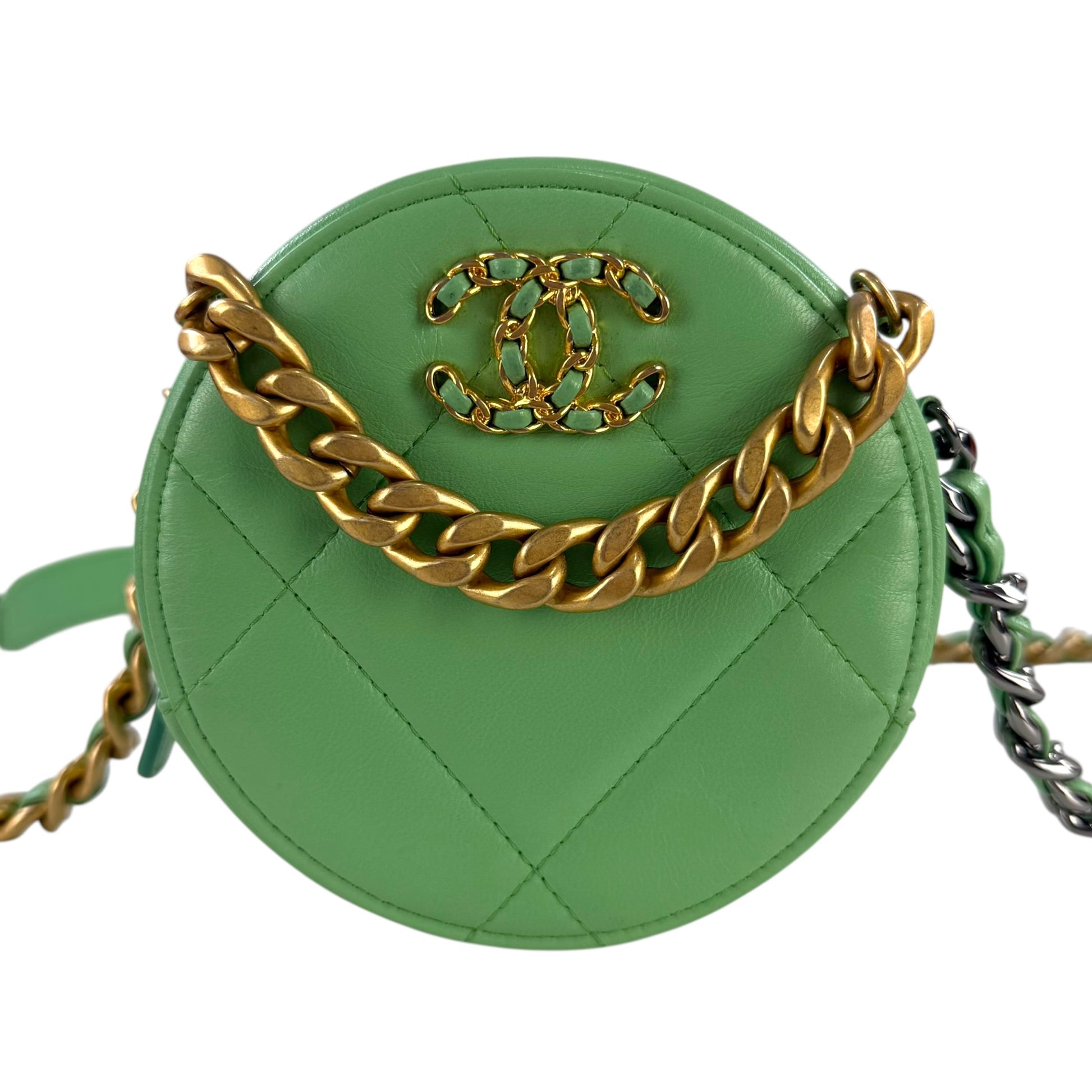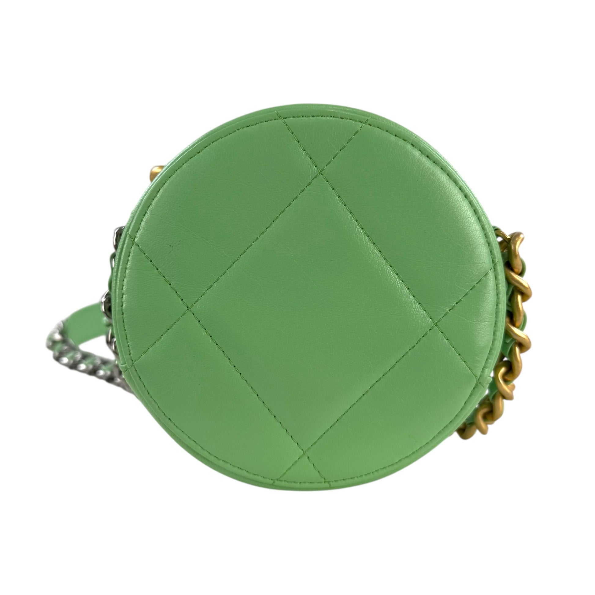 Chanel Goatskin Quilted 19 Round With Chain Crossbody Bag
