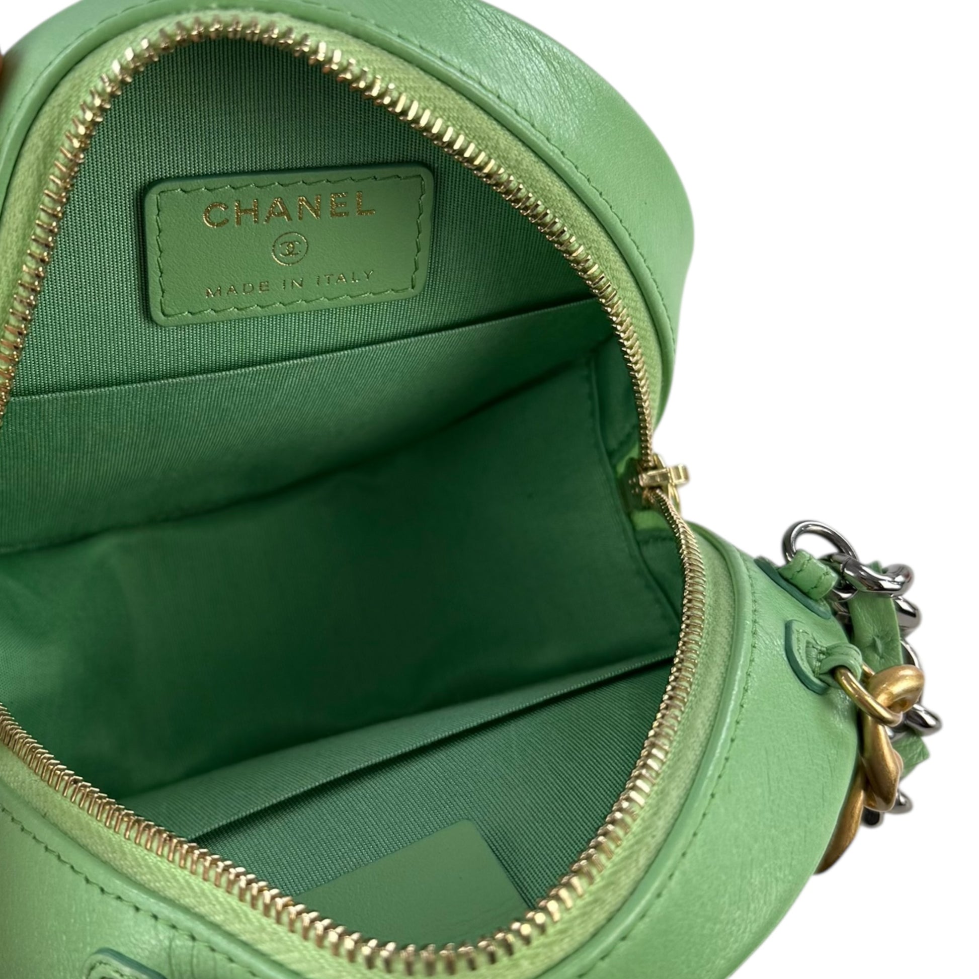 -Authentic Chanel Goatskin Quilted 19 Round With Chain Crossbody Bag