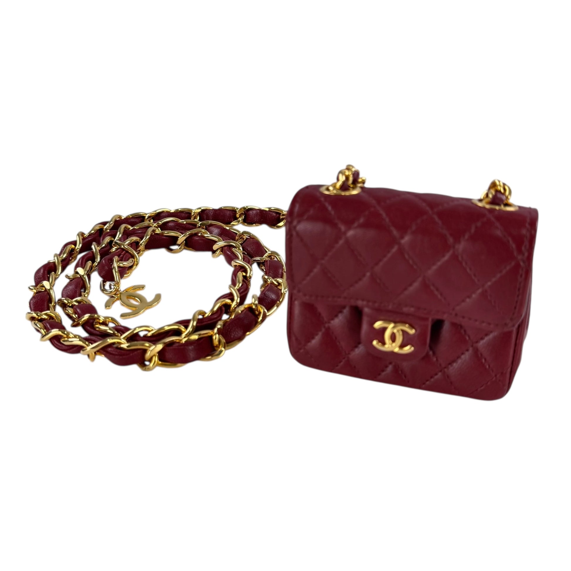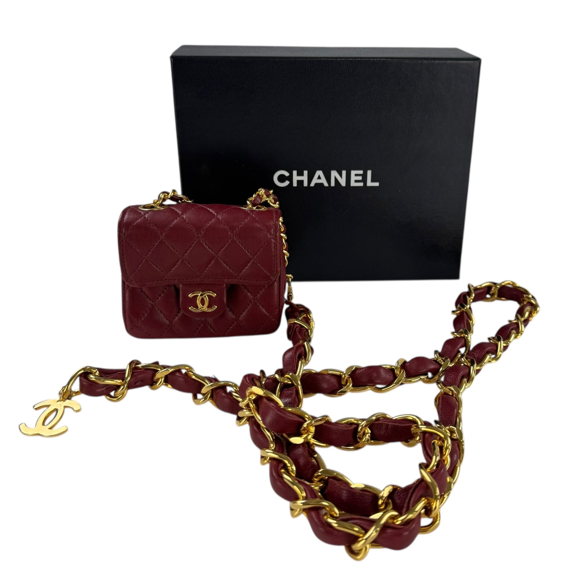 -Authentic Chanel Vintage CC Belt & Mini Mattelase Flap Bag