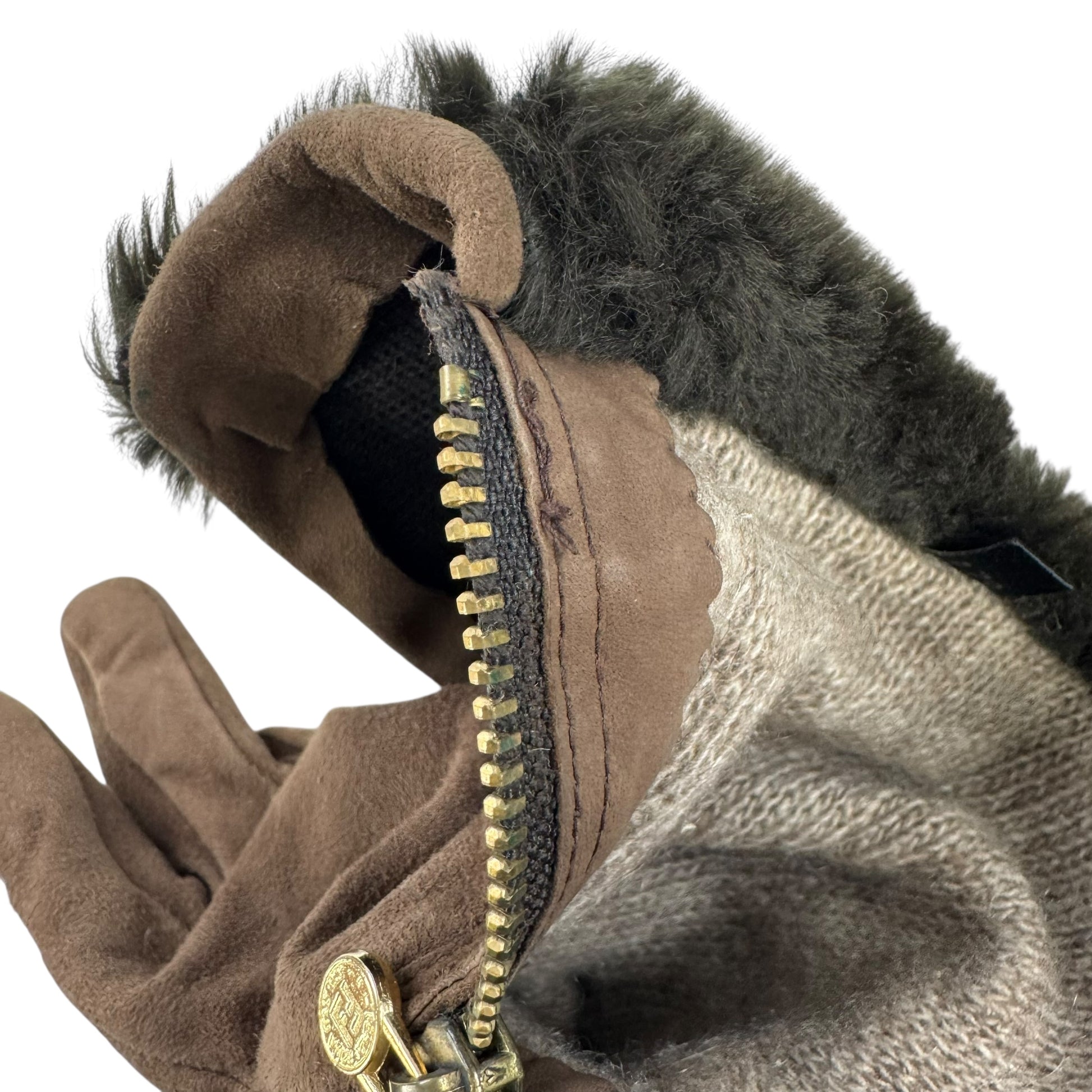 -Authentic Fendi Brown Suede and Fur Gloves