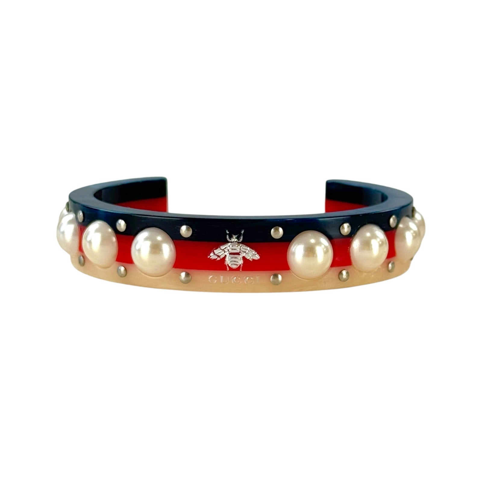 -Authentic Gucci Bee & Pearl Resin Cuff Bracelet