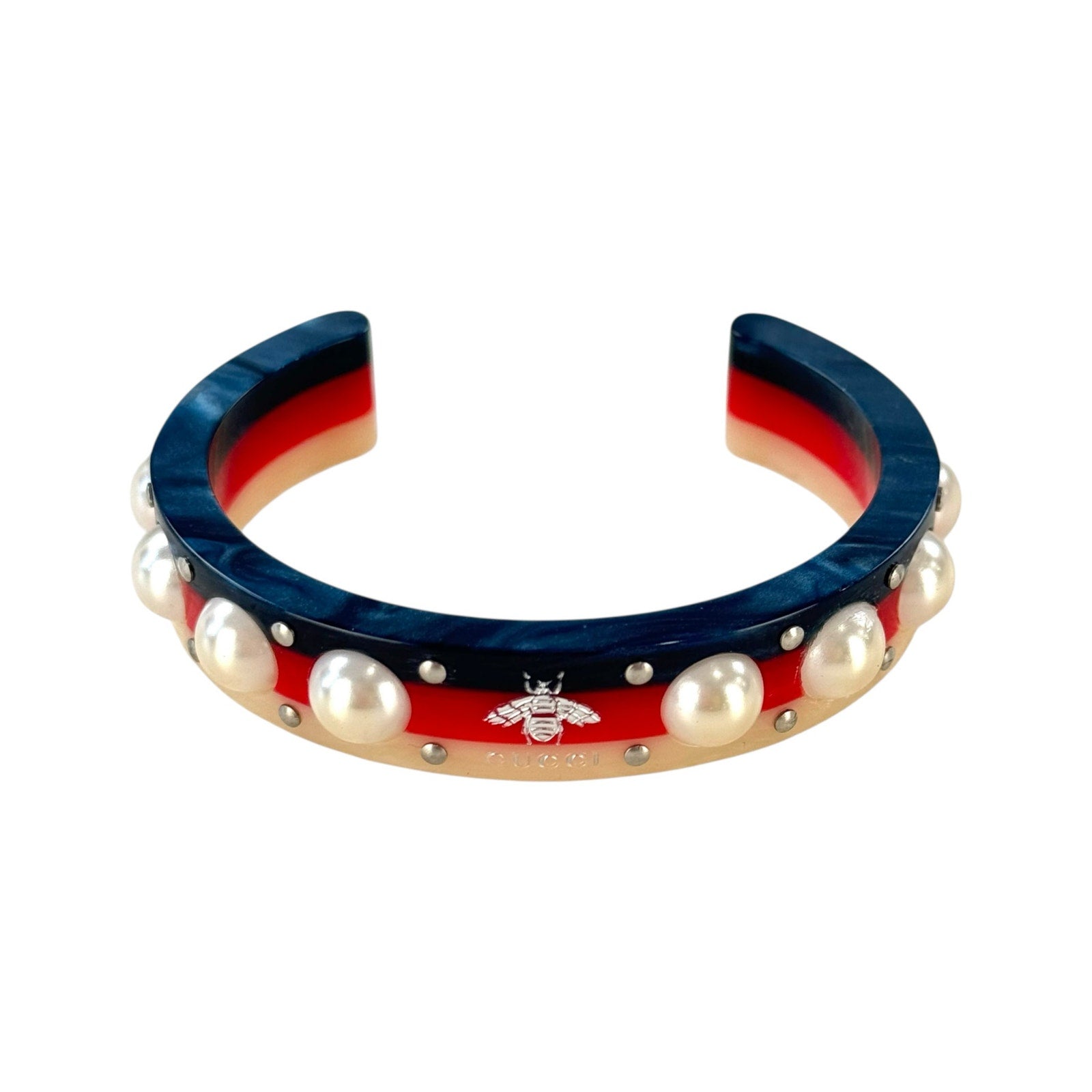 Gucci Bee & Faux Pearl Resin Cuff Bracelet