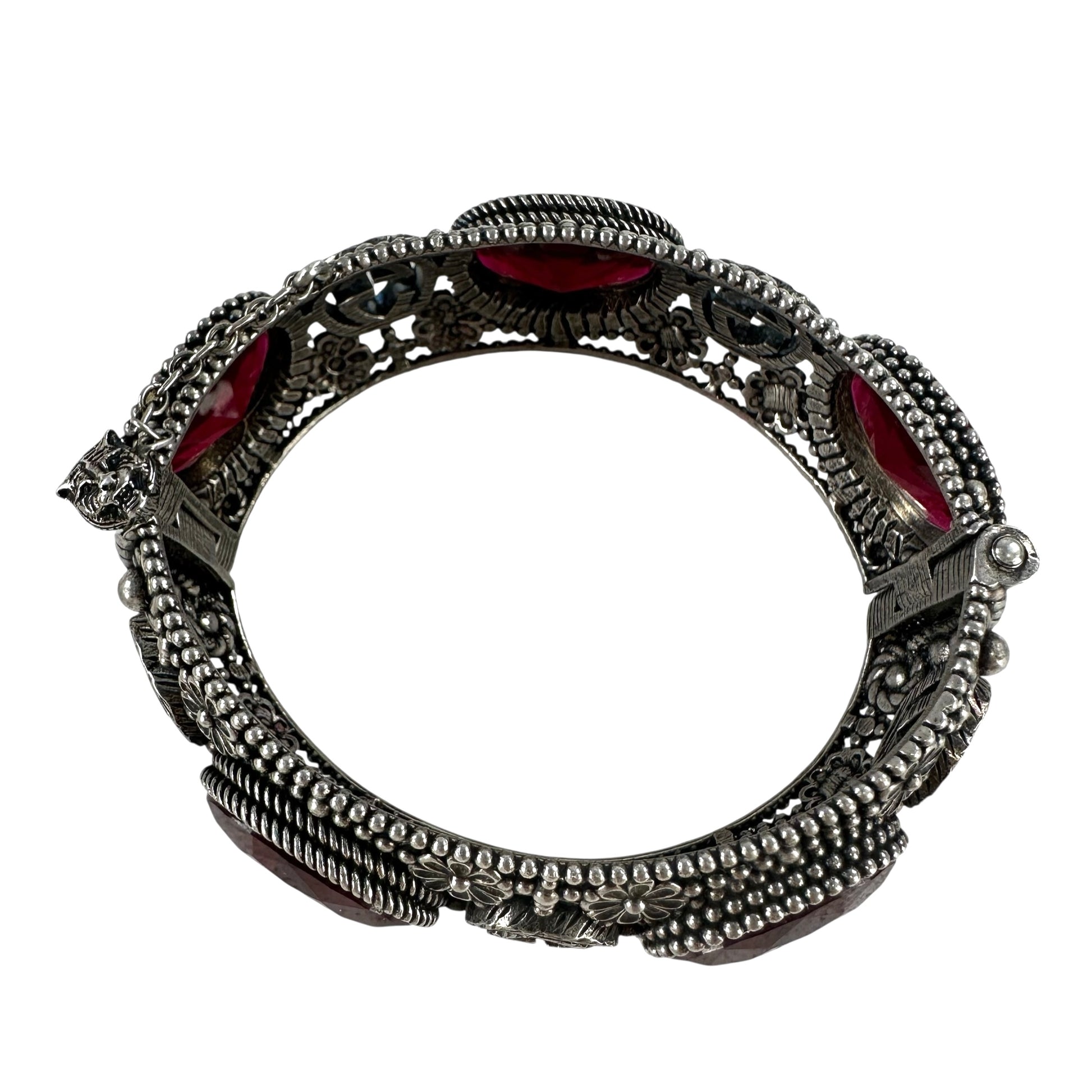 Gucci Interlocking Silver GG Cat Flower Bracelet