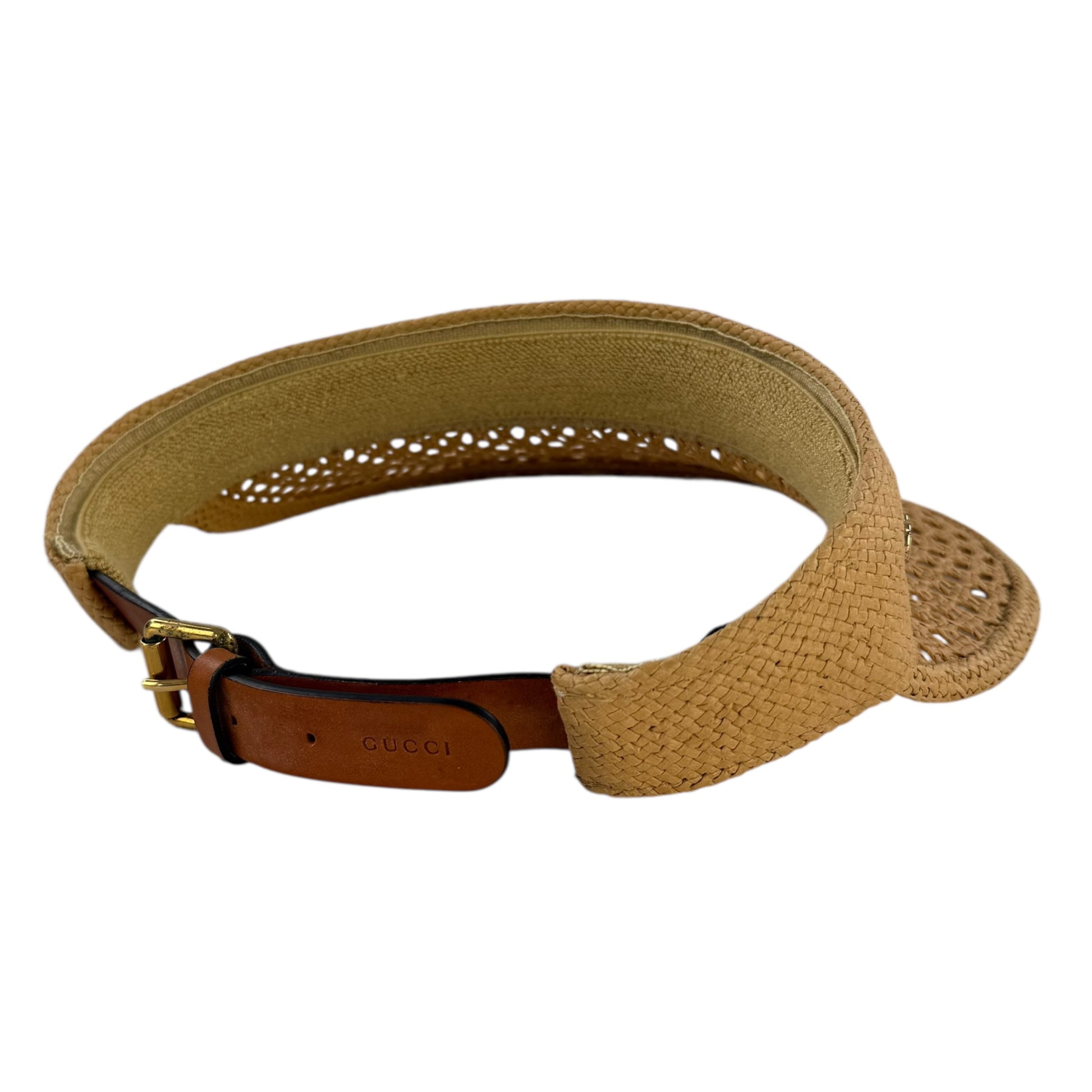-Authentic Gucci Raffia GG Visor Hat