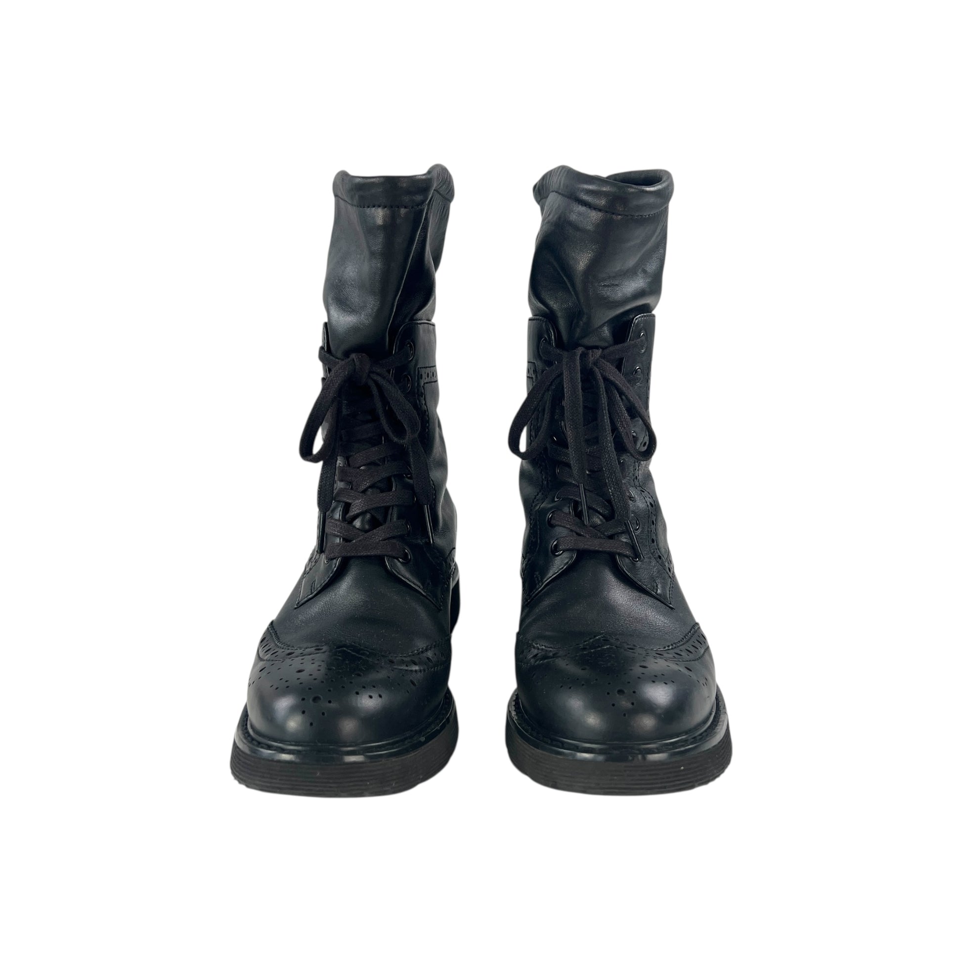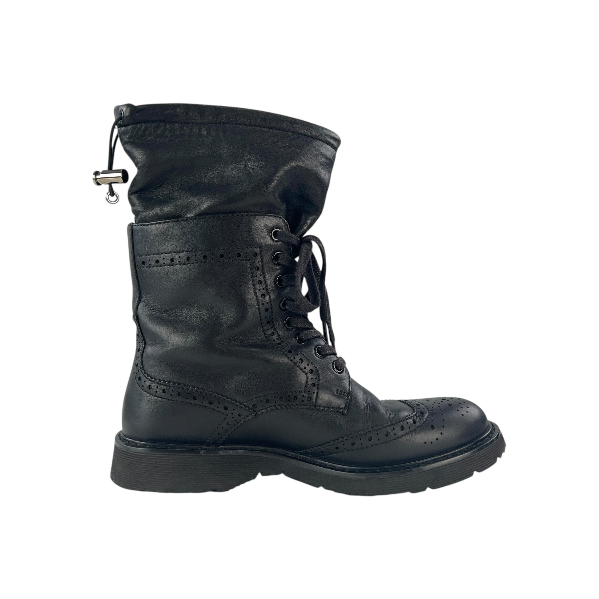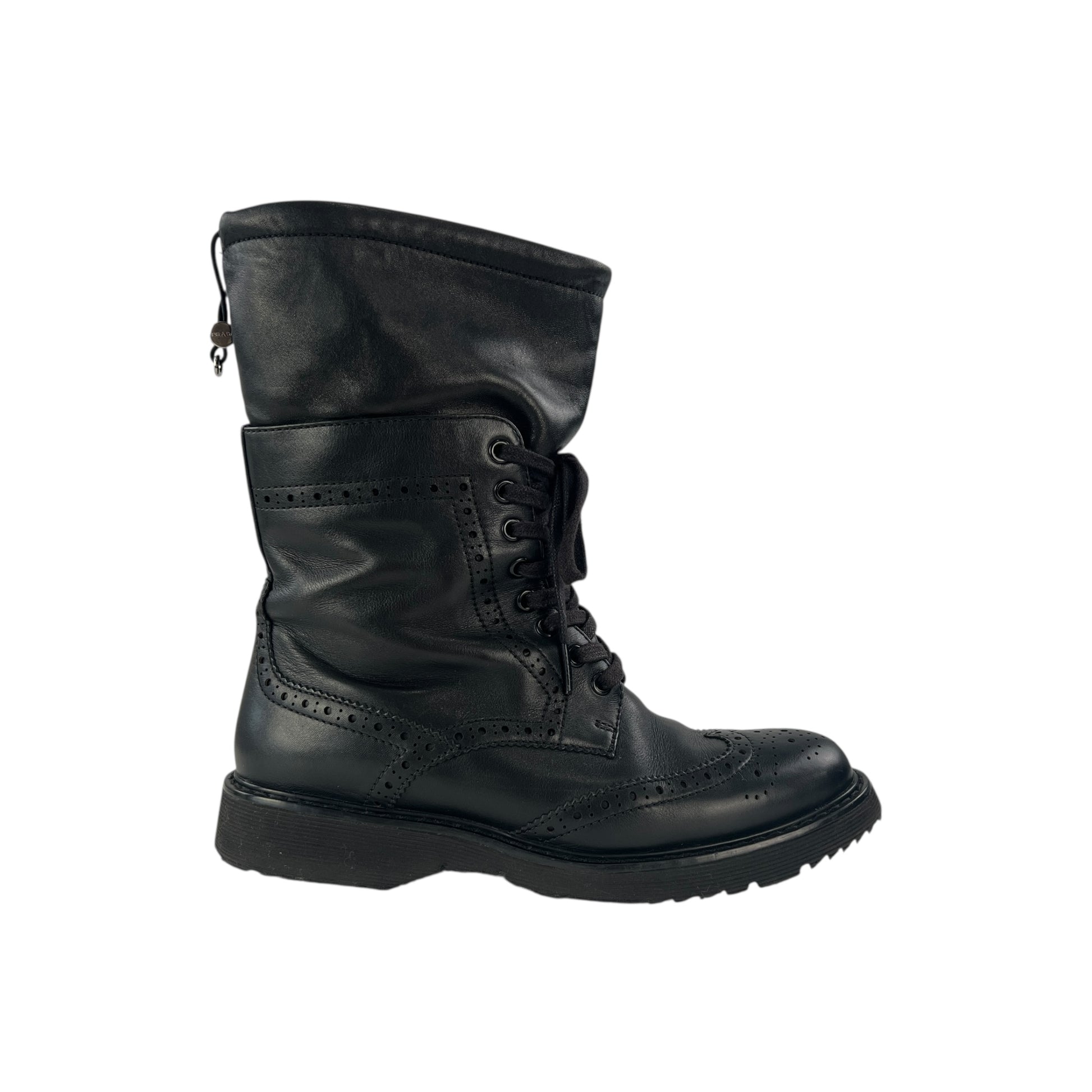 Prada Lambskin Leather Brogue Combat Boots