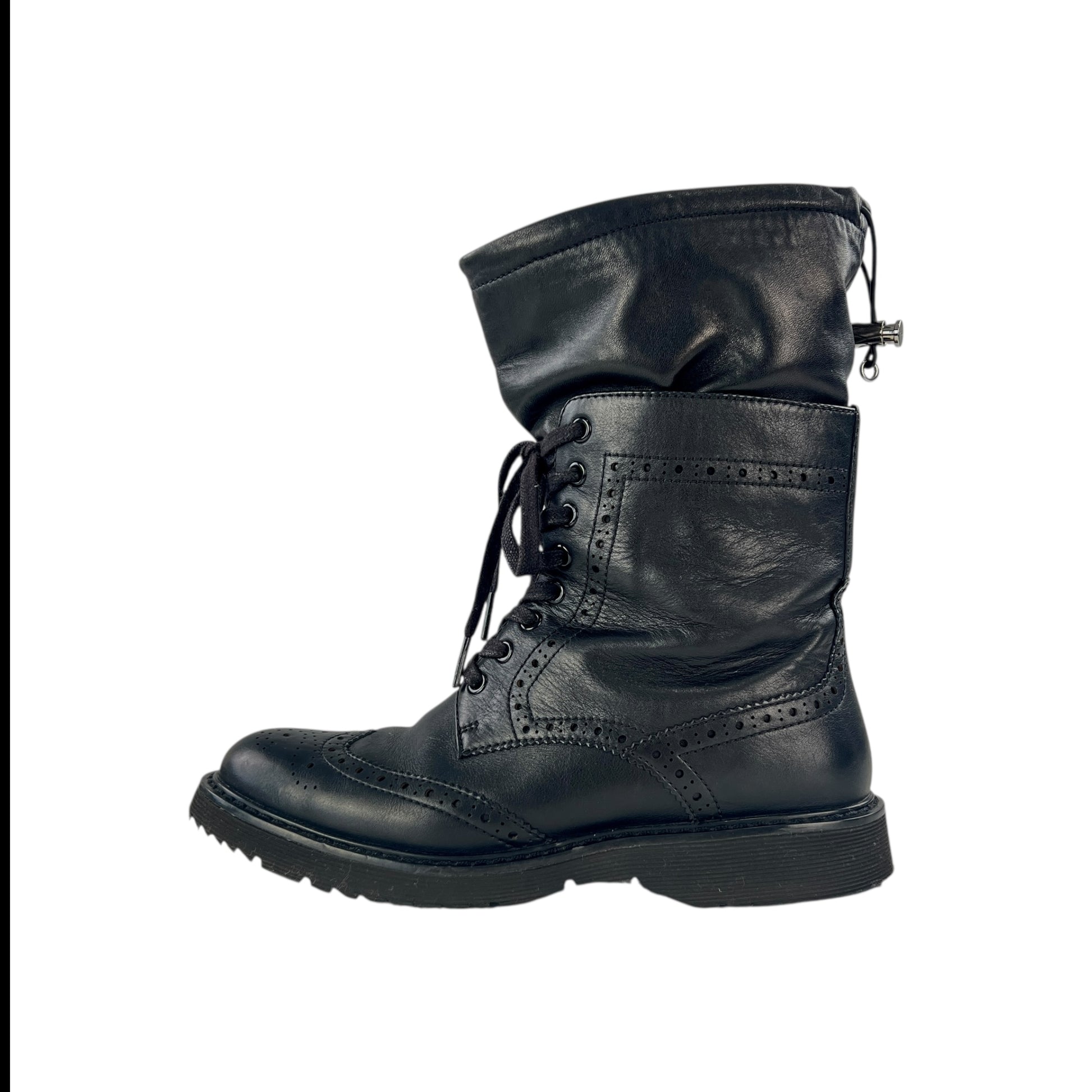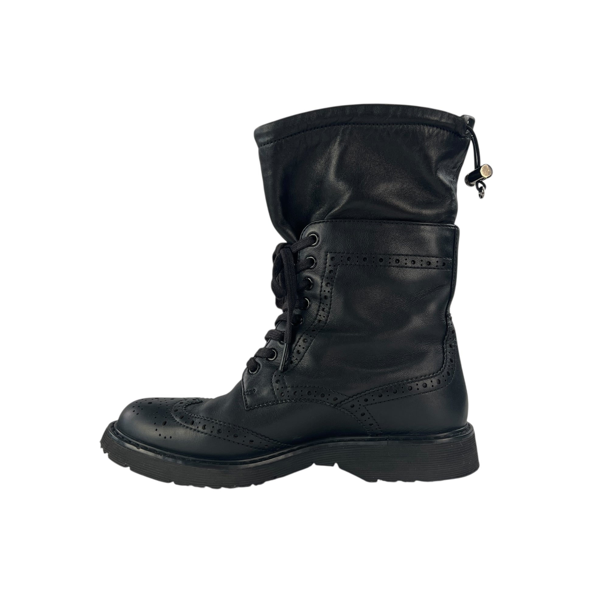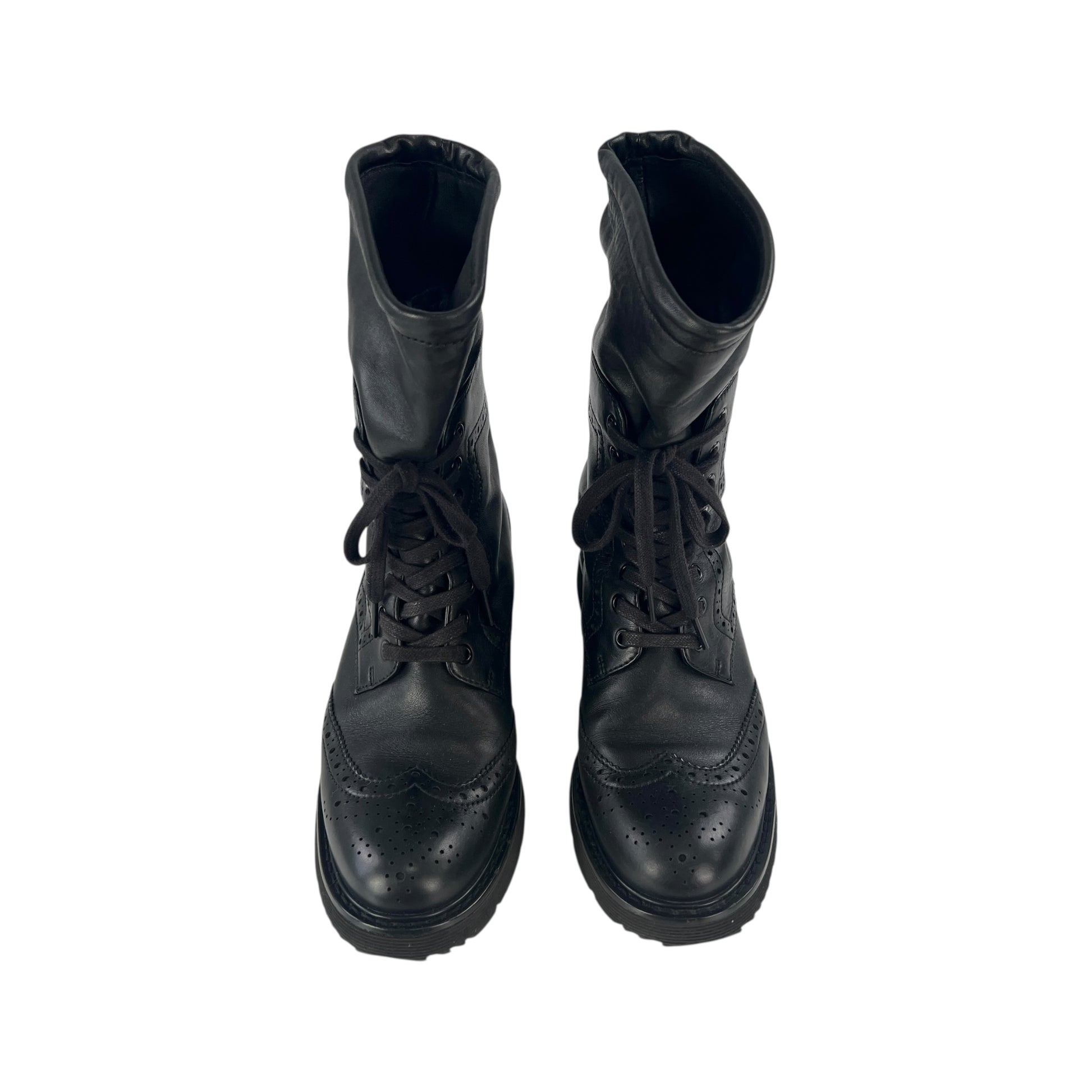 Prada Lambskin Leather Brogue Combat Boots
