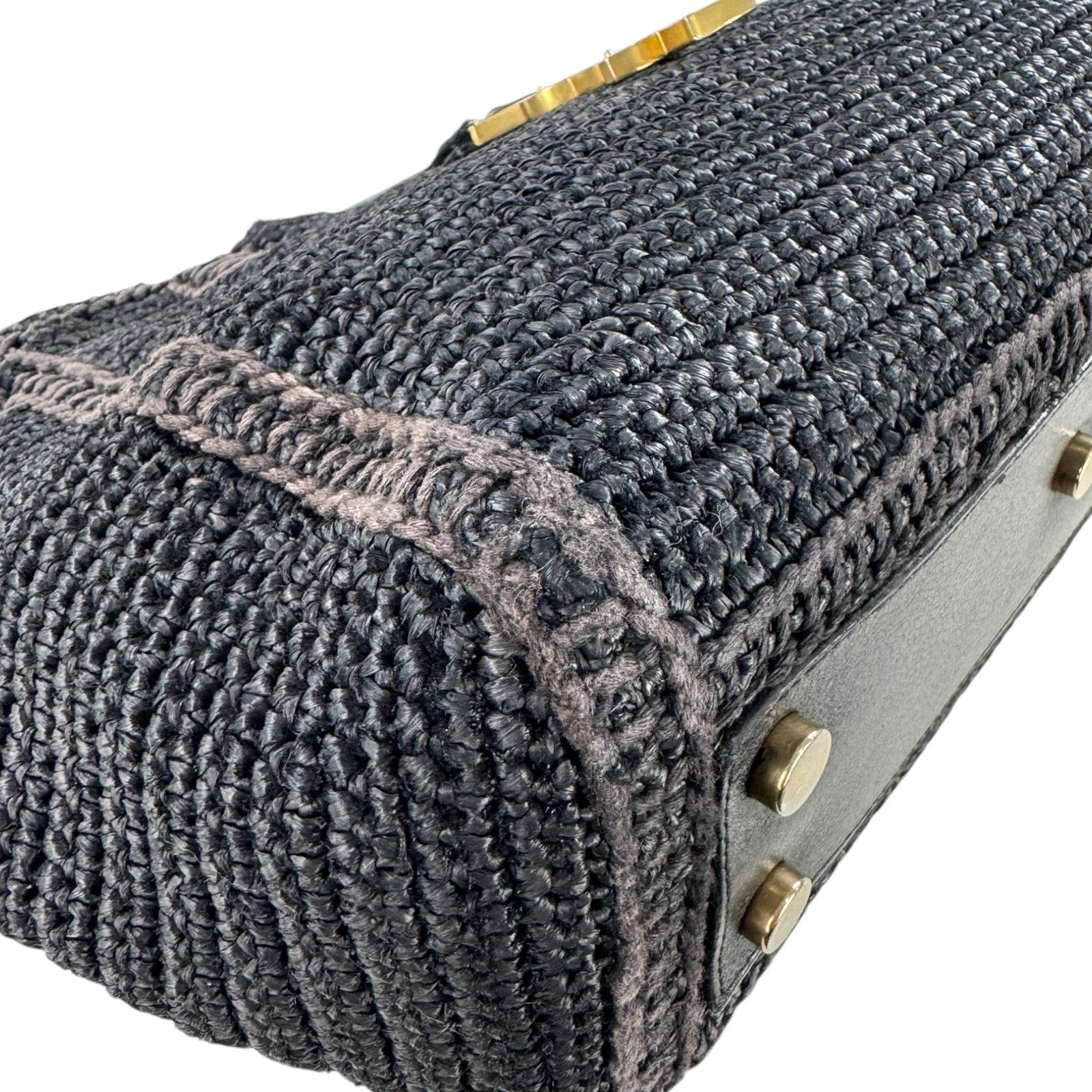 -Wear: Very minor interior stains/fading, very minor raffia fading, very minor edge rubbing, very minor glazing cracks, very minor hardware scratches